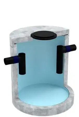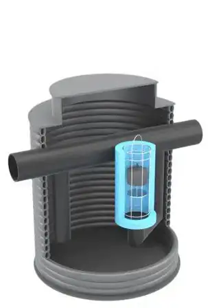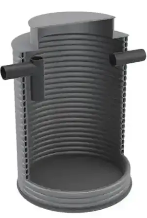 Separator koalescencyjny z osadnikiem i komorą pomp. Wykonany jest z PEHD z dwuściennej rury spiro.