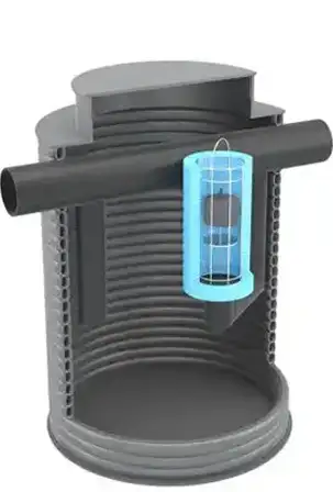 Przedstawione regulatory można oczywiście montować zarówno w studniach betonowych jak i z polietylenu. Poniżej wizualizacje regulatorów montowanych w zbiornikach z PEHD: